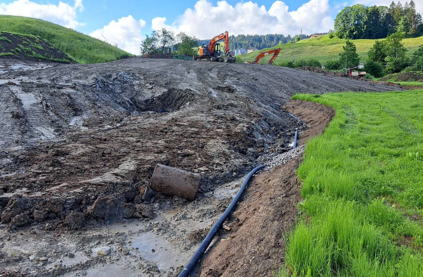 Im Gebiet Stähliboden im Bezirk Einsiedeln wird eine Aushubdeponie Typ A gem. VVEA mit einem Gesamtvolumen von ca. 120'000 m3 realisiert. Auf einer Fläche von ca. 20'000 m2 beträgt die Schütthöhe bis zu 18 m. Hierfür wurden für verschiedene Bauzustände geotechnische Modellierungen zur Stabilitätsberechnung durchgeführt. Weiter wurde das Projekt inkl. der Berücksichtigung der Entwässerung des Deponiekörper umgesetzt. Zudem waren vertiefte Hochwasserschutzabklärungen erforderlich. Ab dem Jahr 2024 wird sauberes Aushubmaterial aus der Region angeliefert und fachgerecht vor Ort eingebaut.