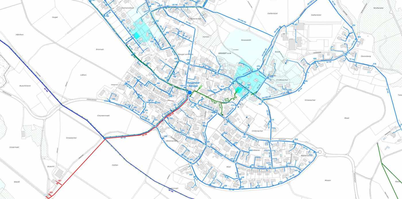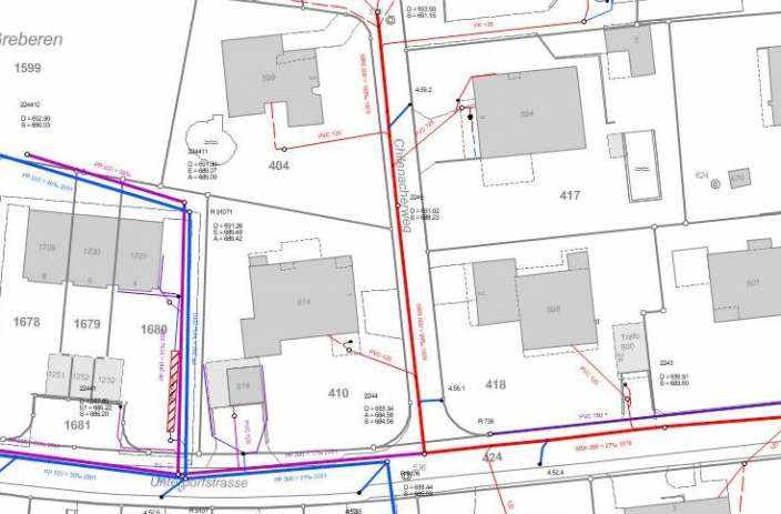 Übernahme der Medien Wasser, Abwasser, Melioration und Strassen ab den analogen Plänen in ein GIS.