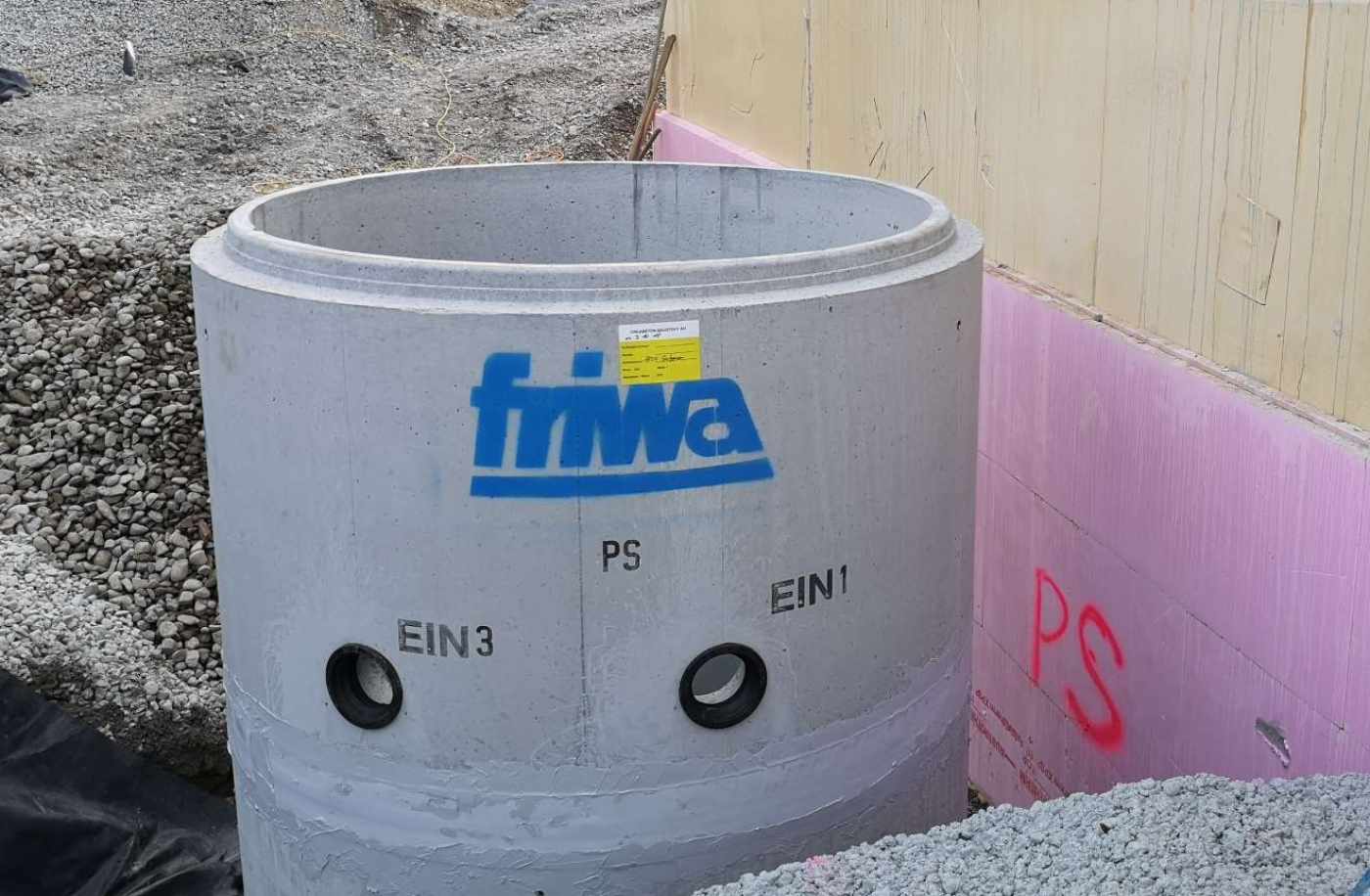 Die Leitungen werden in Kunststoff erstellt und voll einbetoniert (PP gesteckt resp. PE geschweisst).