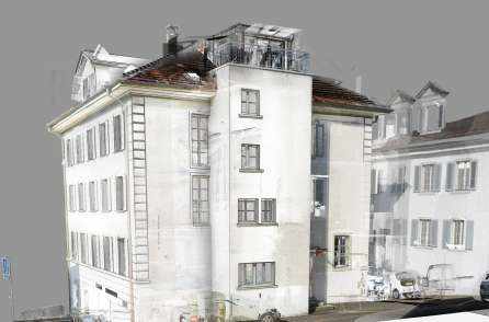 Die bestehenden Gebäude an der Strehlgasse 11 &13 in Schwyz wurden mit Laserscanning aufgenommen. Aus der daraus resultierenden Punktwolke wurde ein Revit-Modell erstellt. Dieses Modell wurde exportiert, um es danach in Archicad zu importieren. Die Abgabe erfolgte in einem Archicad-Format.